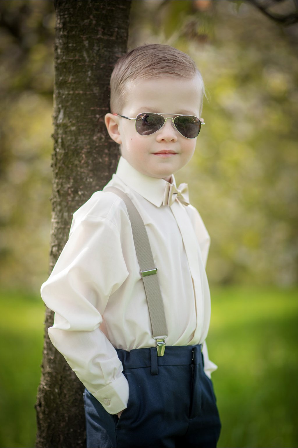 Chlapecké šle Y s koženým středem a zapínáním na klipy - 25 mm, materiál 76 % polyester, 24 % elastan + pravá kůže, béžová