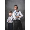 Chlapecké šle Y s koženým středem a zapínáním na klipy - 25 mm, materiál 76 % polyester, 24 % elastan + pravá kůže, modrá