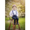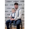 Chlapecké šle Y s koženým středem a zapínáním na klipy - 25 mm tmavě modrá, tmavě hnědá kůže 862-3163