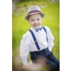 Chlapecké šle Y s koženým středem a zapínáním na klipy - 25 mm, materiál 76 % polyester, 24 % elastan + pravá kůže, modrá