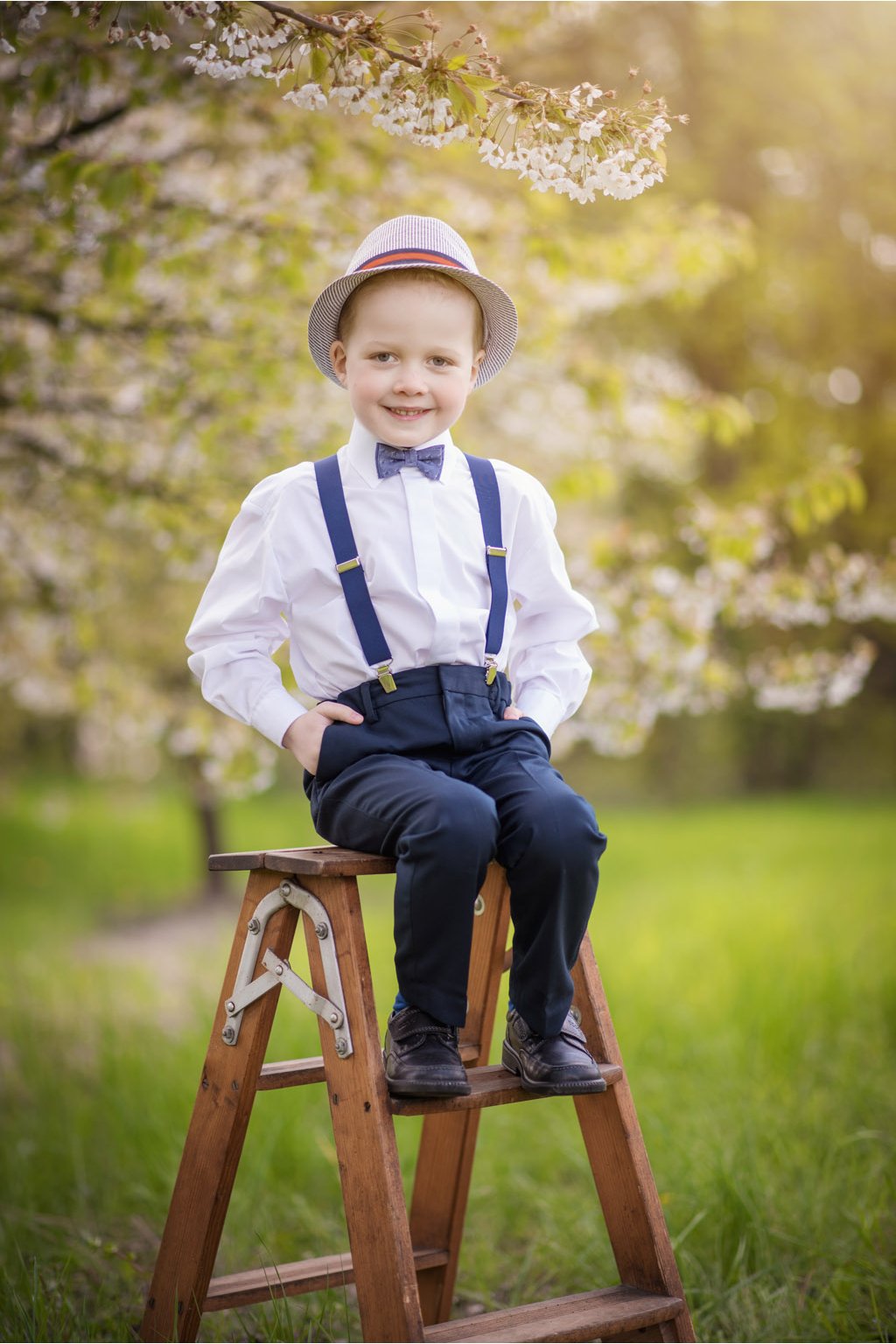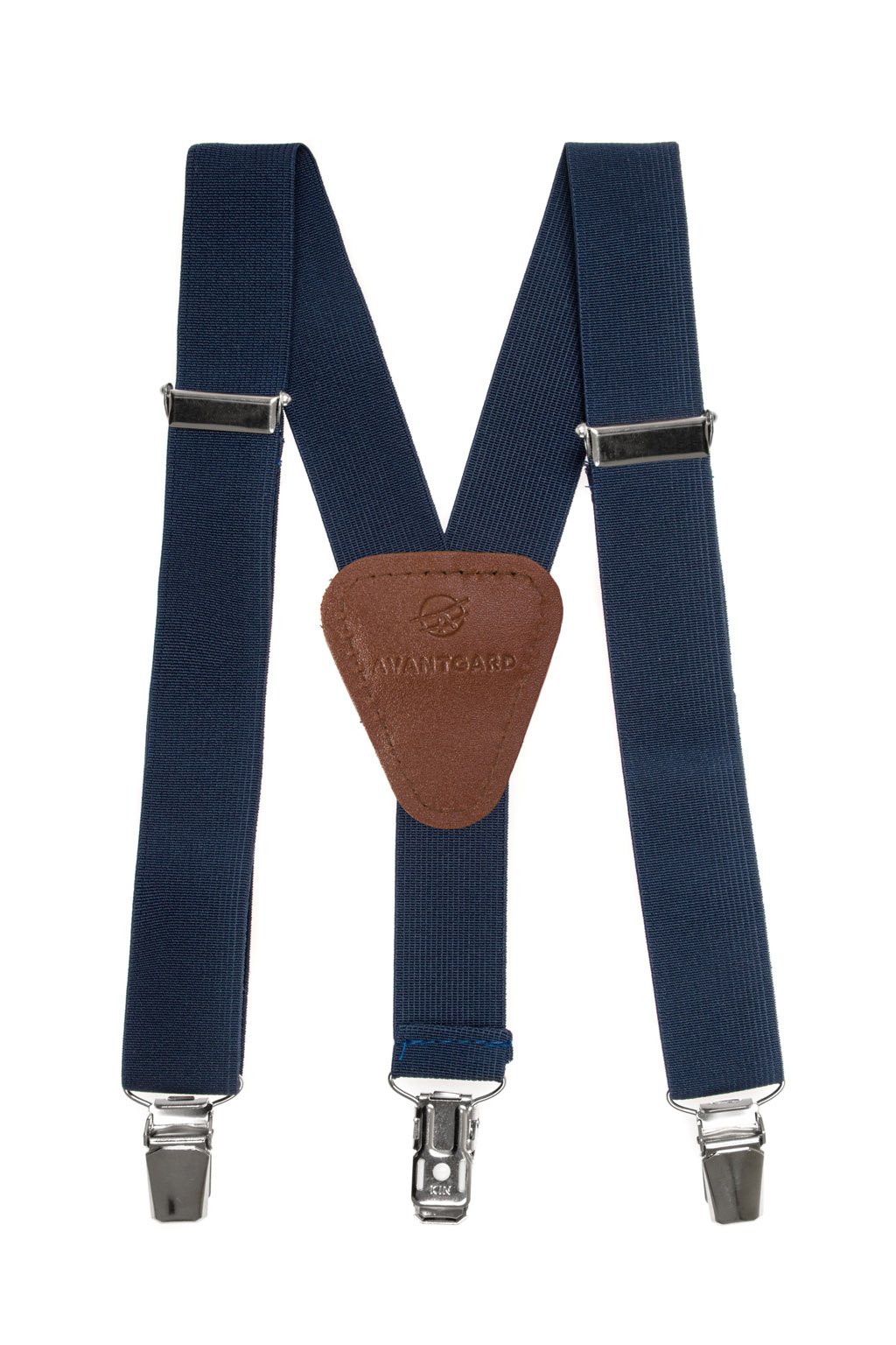 Chlapecké šle Y s koženým středem a zapínáním na klipy - 25 mm tmavě modrá, tmavě hnědá kůže 862-3163