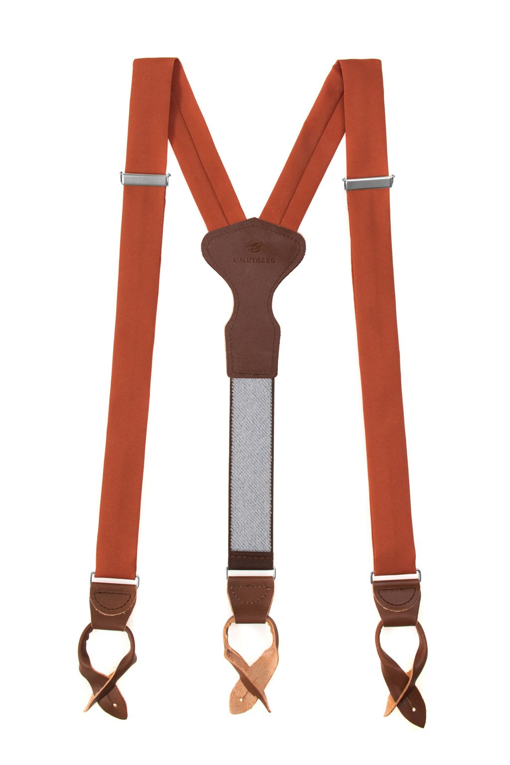 Látkové šle Y s koženým středem a poutky - 35 mm - v dárkovém balení, materiál 100% polyester + 80 % polyester, 10 % polyamid, 10 % elastan + pravá kůže, hnědá