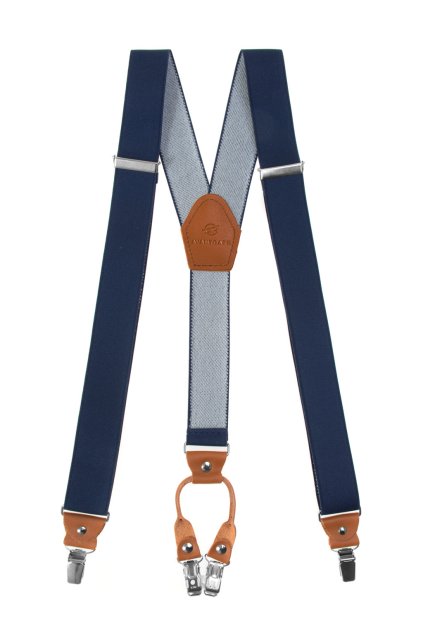 Šle Y s koženým středem a zapínáním na klipy - 35 mm tmavě modrá, koňaková kůže 880-3169