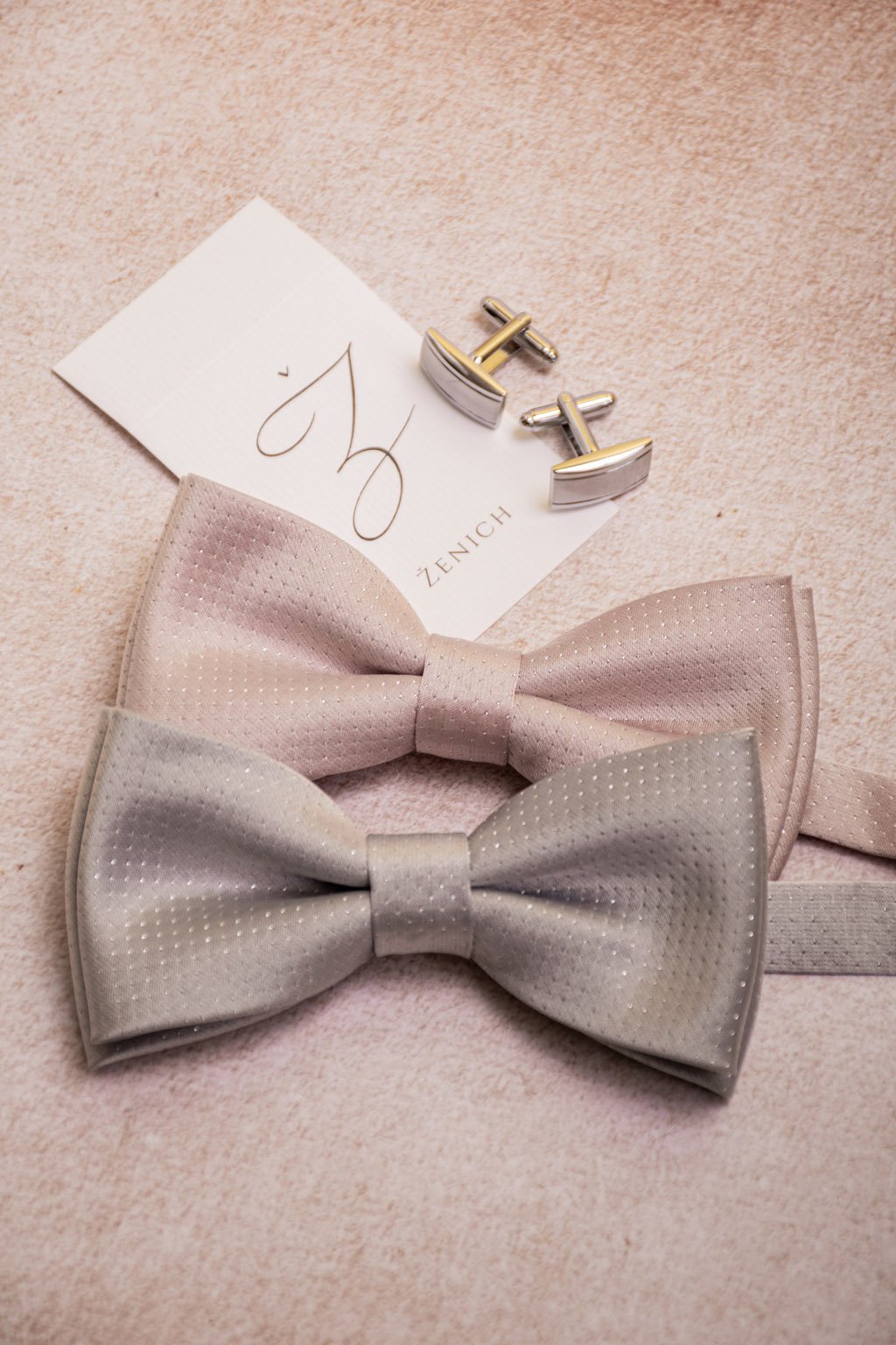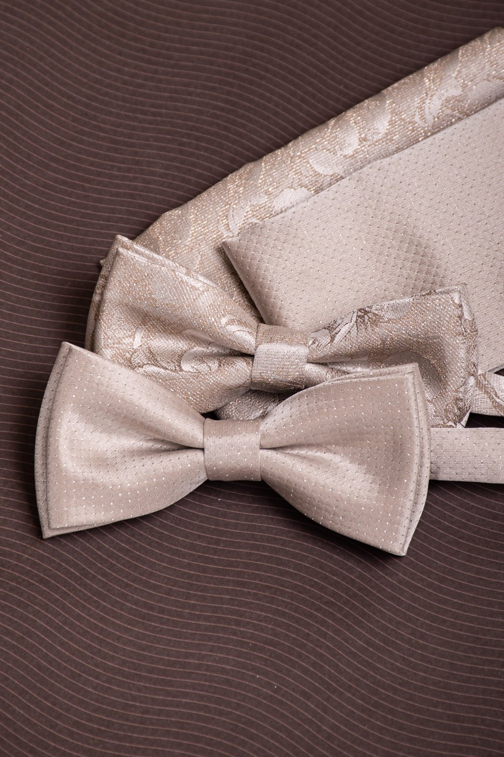 Motýlek s kapesníčkem, materiál 100% polyester, béžová