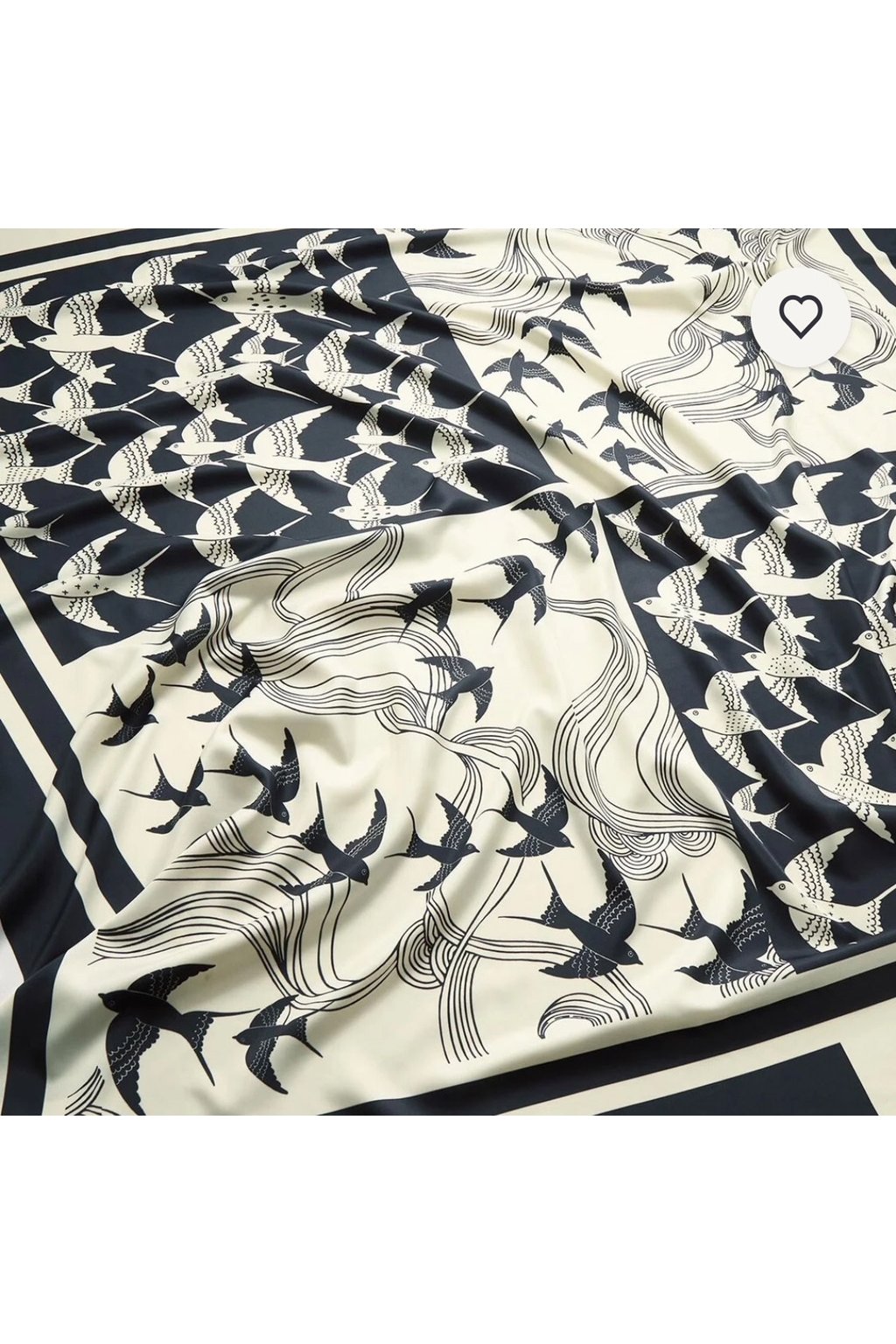 Šátek Birds 140x140, materiál 100% polyester, černá