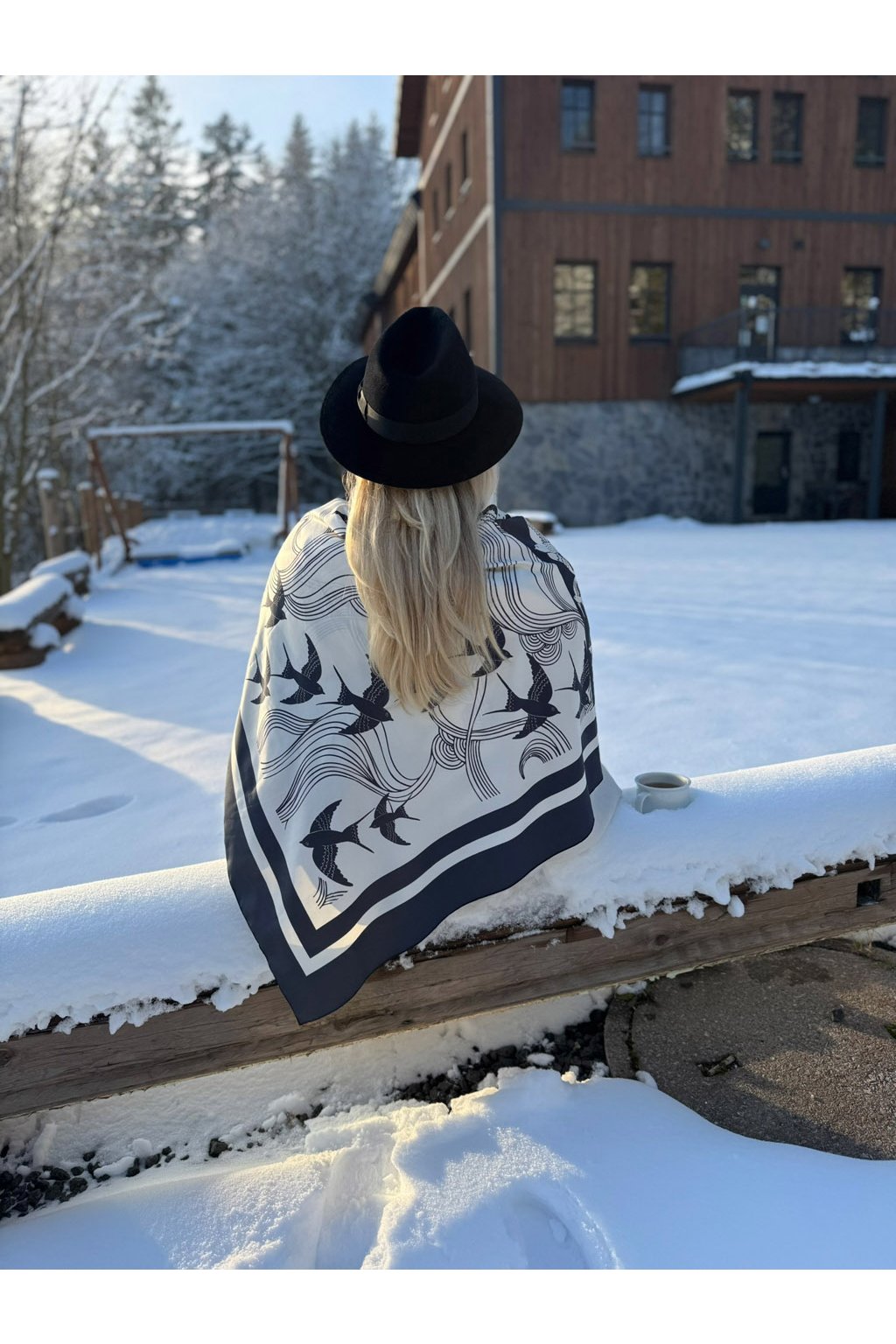 Šátek Birds 140x140 černá/smetanová 884-4405