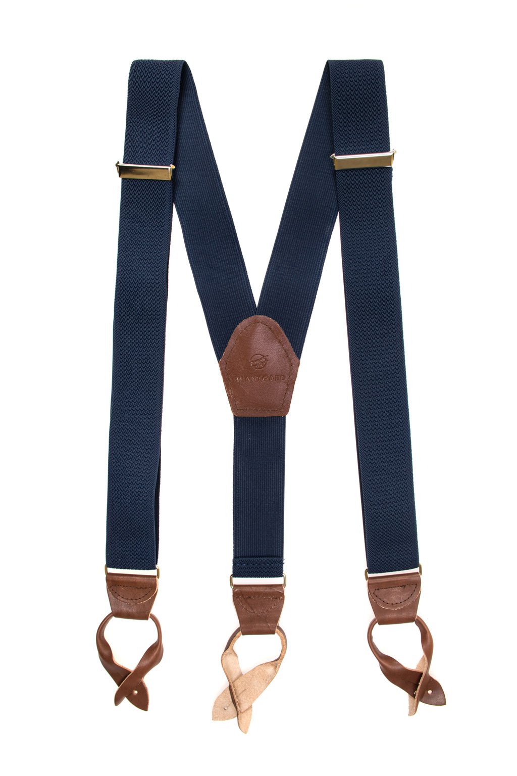 Šle Y s koženým středem a poutky - 35 mm tmavě modrá, tmavě hnědá kůže 874-3163