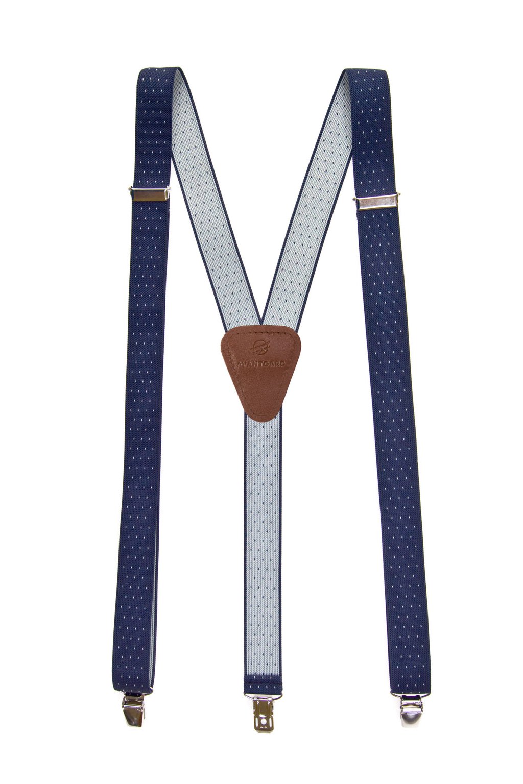 Šle Y s koženým středem a zapínáním na klipy - 25 mm modrá s bílým puntíkem, tmavě hnědá kůže 867-310163