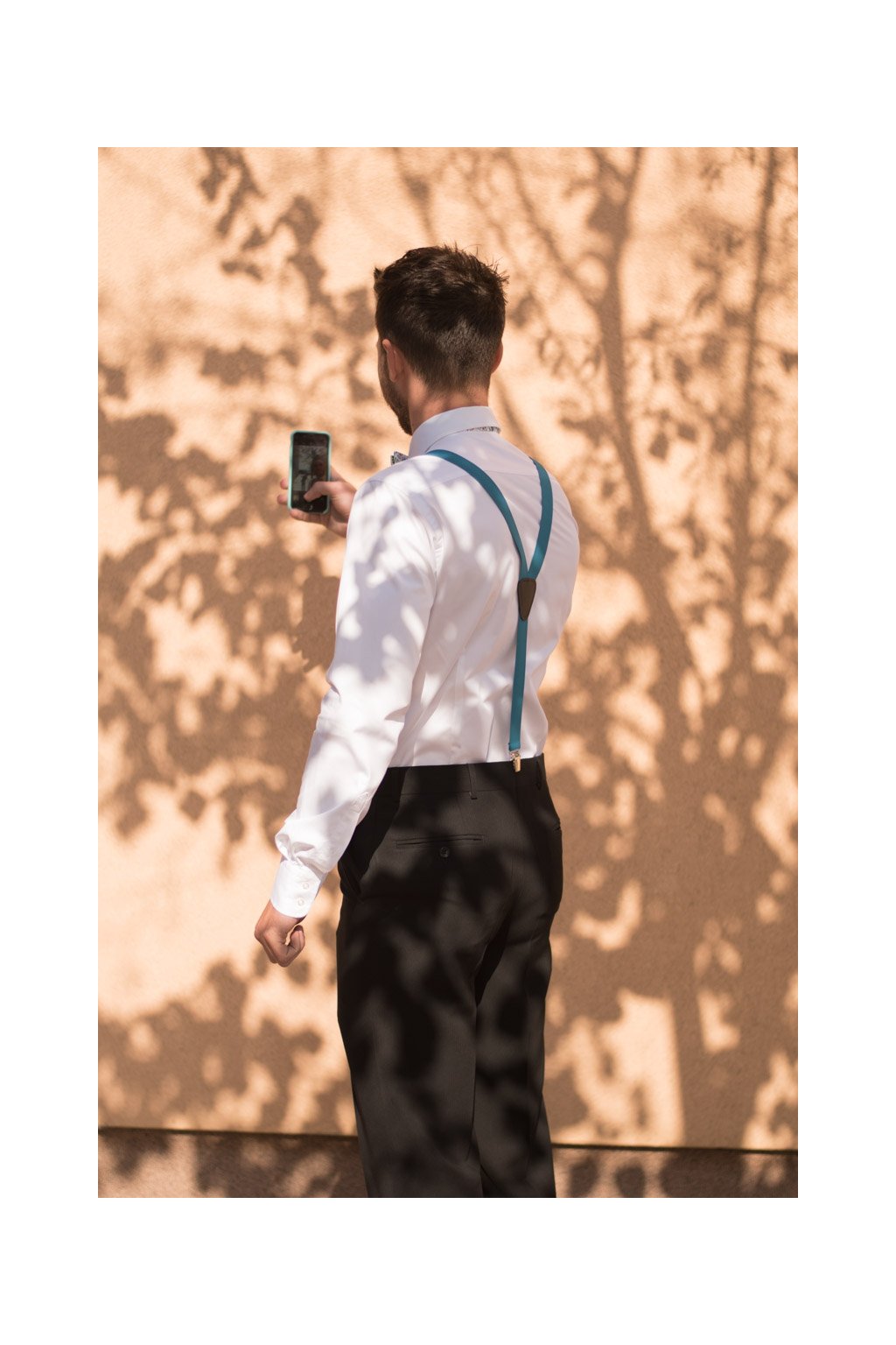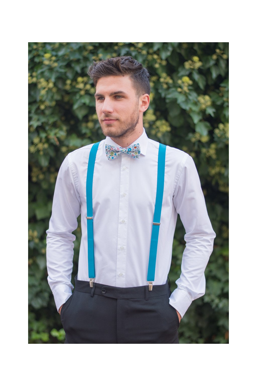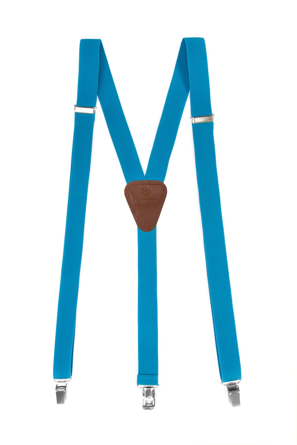 Šle Y s koženým středem a zapínáním na klipy - 25 mm, materiál 76 % polyester, 24 % elastan + pravá kůže, tyrkysová