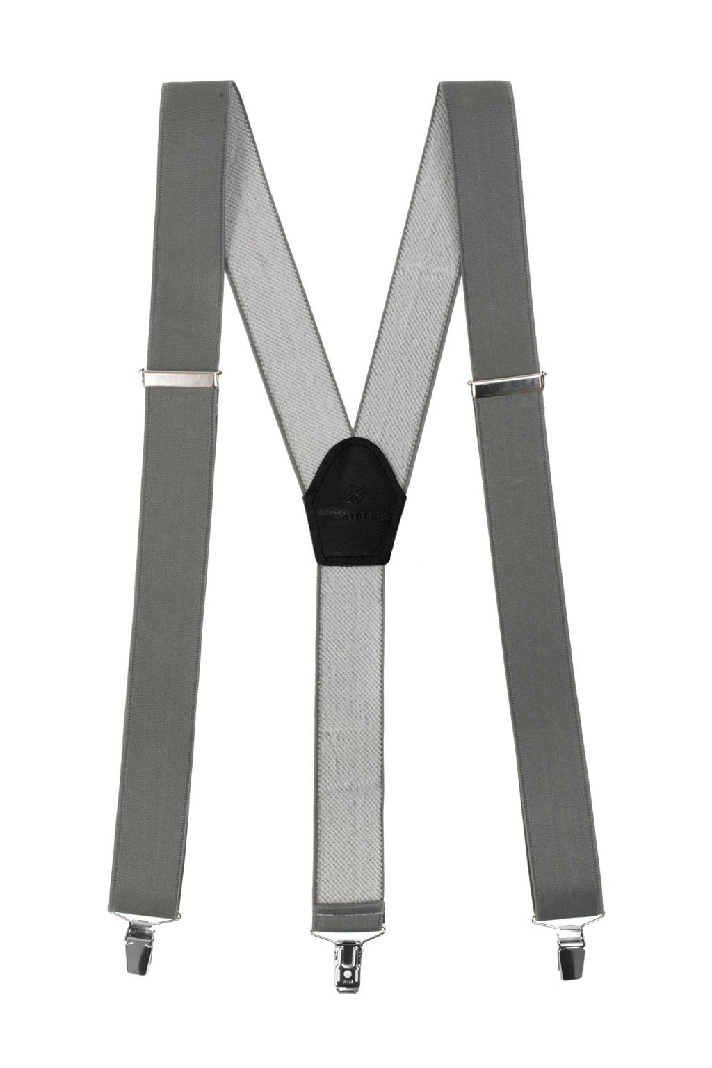 Šle Y s koženým středem a zapínáním na klipy - 35 mm, materiál 76 % polyester, 24 % elastan + pravá kůže, šedá